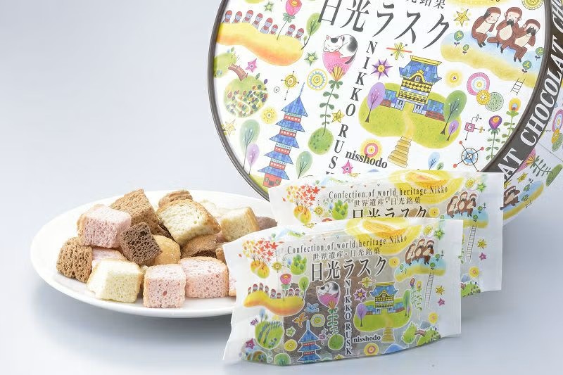 「日光ラスク」は、バターをふんだんに使用し、一口サイズで焼き上げられており、香ばしく何個でも食べたくなってしまうほどのおいしさです。味のバリエーションも豊富で、日光土産の定番になっています。